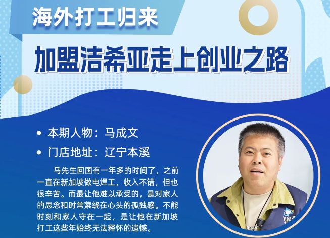 海外打工歸來,加盟潔希亞走上創業之路
